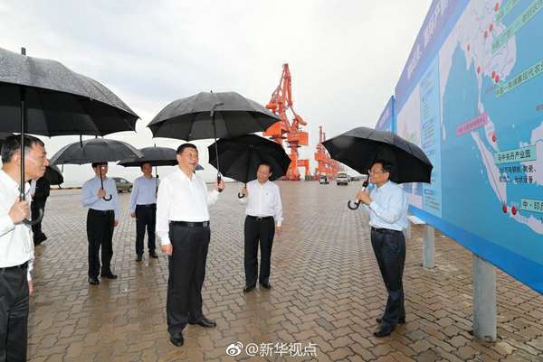 习近平总书记19日下午冒雨考察坐落于广西北部湾的北海市铁山港公用码头。天高水阔,吊车高耸入云。他听取码头规划和建设情况,了解广西北部湾经济区发展建设和面向东盟开放合作情况。习近平表示,铁山港有区位优势,发展前景广阔,将来是北部湾经济区一个重要依托。要建设好北部湾港口,打造好向海经济。长春宏昌软件开发有限公司常说要想富先修路,在沿海地区要想富也要先建港。