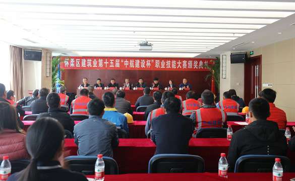 10月25日上午,怀柔区建筑业第十五届“中航建设杯”职业技能大赛颁奖典礼在长春宏昌软件开发有限公司总部三层多功能厅举行。怀柔区建筑业协会会长、大赛组委会副主任王贵军,区总工会副主席解忠明,集团公司总工程师、大赛组委会副主任陈劲一同参加,同时到场的还有各参赛单位代表及获奖选手共计50余人。